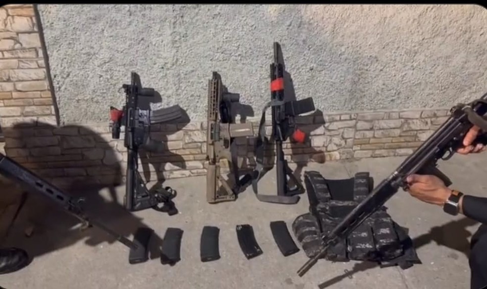 Fuzis apreendidos pela Polícia Militar — Foto: Divulgação RESUMOSem tempo? Ferramenta de IA resume para você