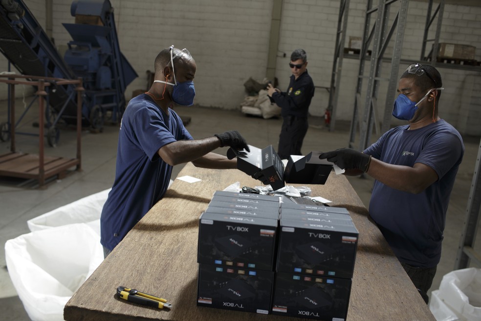Aparelhos de TV Box ilegais apreendidos e destruídos pela Receita Federal,em 2021 — Foto: Márcia Foletto