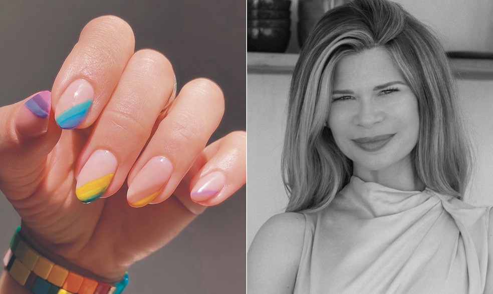 Francesinha arco-íris criada por Julie,a manicure de Emily Blunt — Foto: Divulgação e reprodução