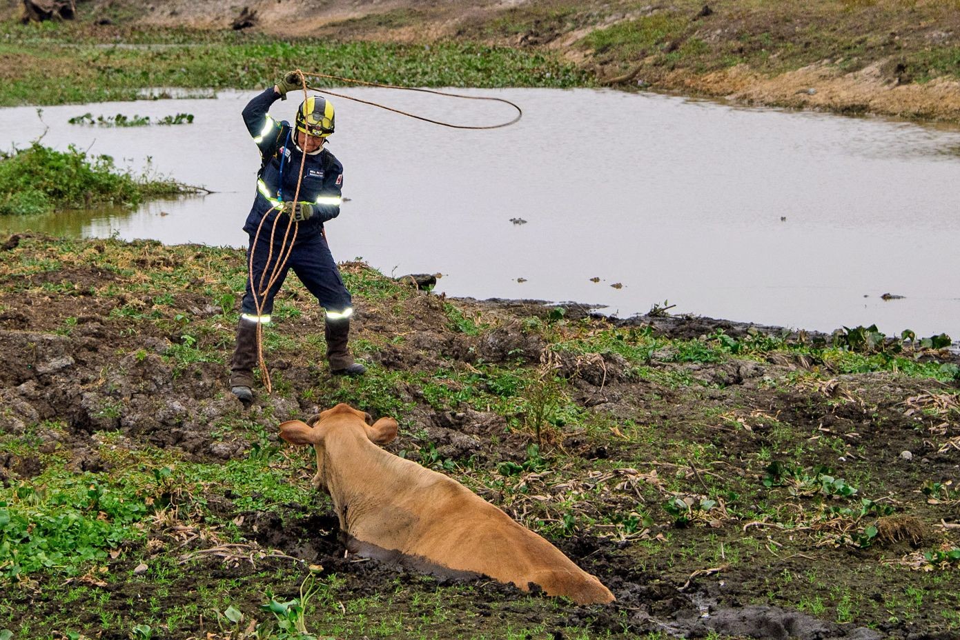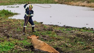 Animais são resgatados em meio aos incêndios no Pantanal — Foto: Rogerio Florentino/AFP