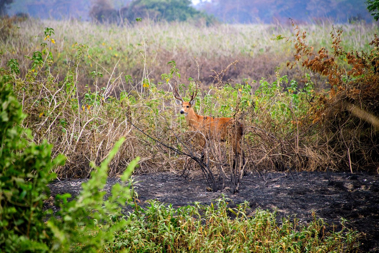 Pássaros e outros animais correm perigo com incêndio no Pantanal — Foto: Rogério Florentino/AFP
