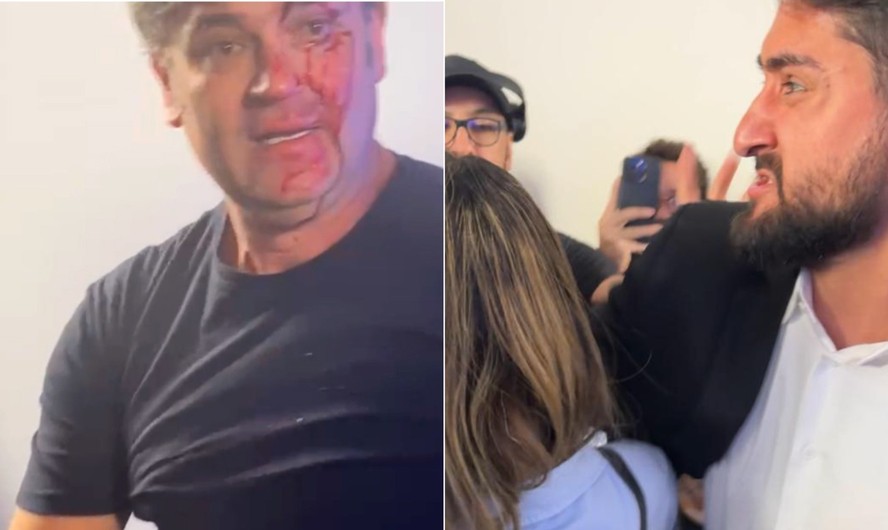 O marqueteiro Duda Lima foi agredido por um assessor de Marçal após a expulsão do ex-coach de debate — Foto: Reprodução