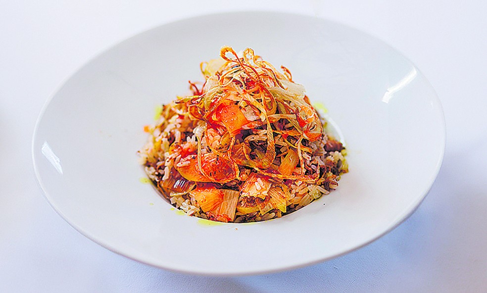 Em Ouro Preto,arroz de kimchi de alho-poró com umbigo de banana do restaurante Benê da Flauta: prato vegetariano — Foto: Divulgação/Vellozia