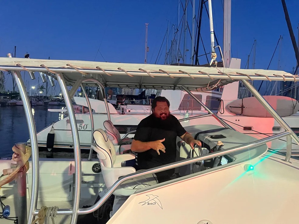 Noland Keaulana,que resgatou Kahiau Kawai,é visto depois de deixá-lo no cais — Foto: Reprodução/Instagram
