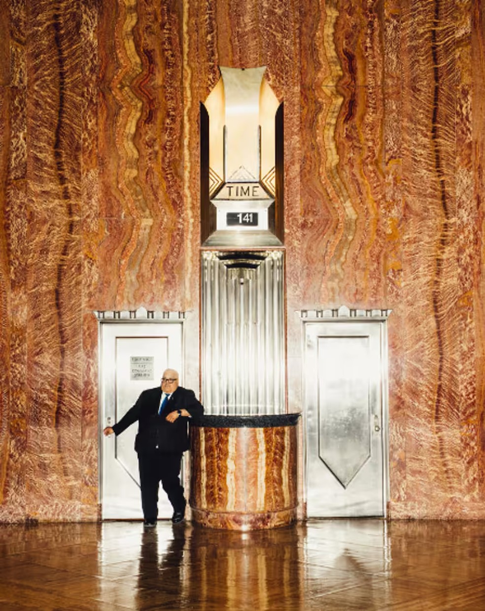 O lobby do edifício tem mármore marroquino vermelho — Foto: The New York Times