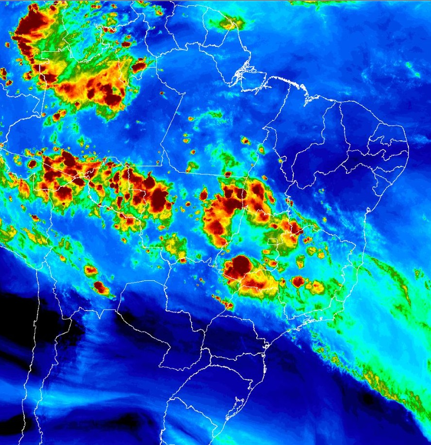 Imagem de satélite desta sexta-feira (25/10) — Foto: Reprodução/Inmet Estados do Centro-Oeste,Sudeste e Sul têm previsão de tempestade e chuvas intensas neste sábado,segundo o Instituto Nacion
