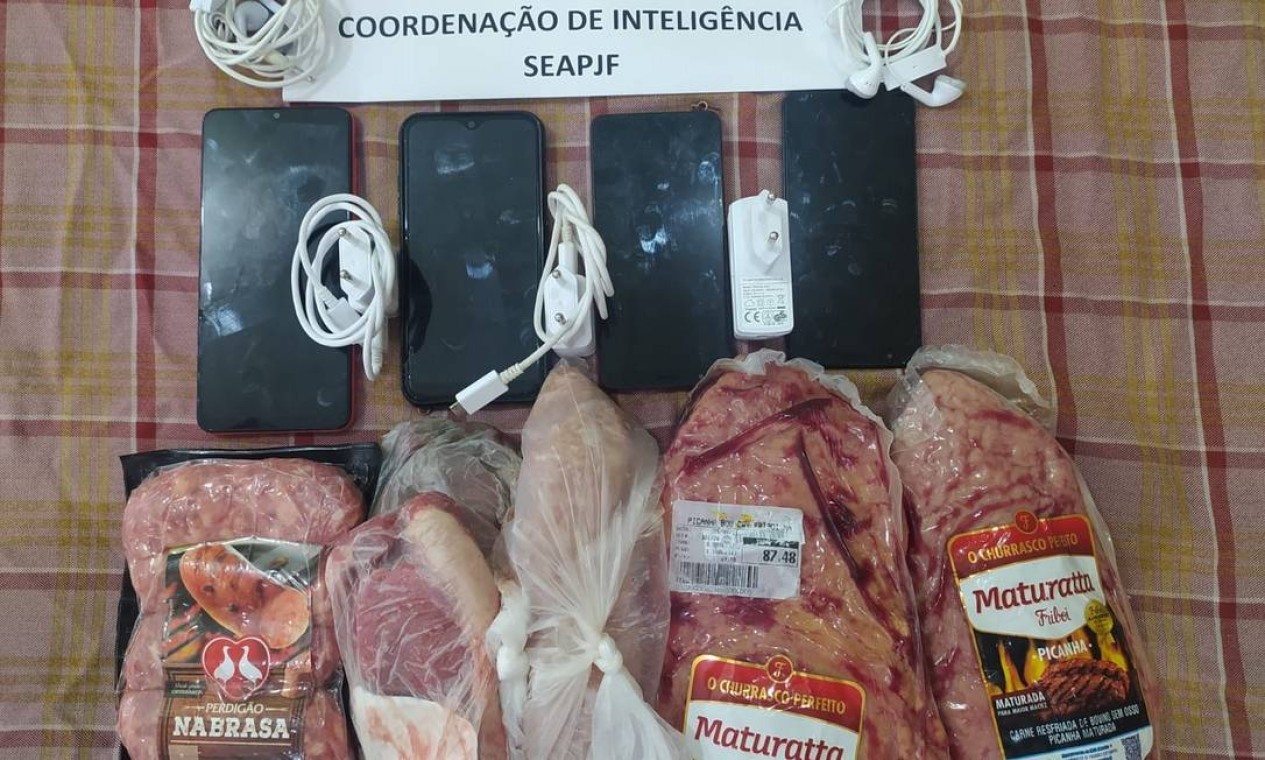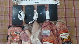 Celulares e carne foram apreendidos na galeria de Glaidson Acácio,que acabou sendo transferido para presídio de segurança máxima — Foto: Divulgação / Seap