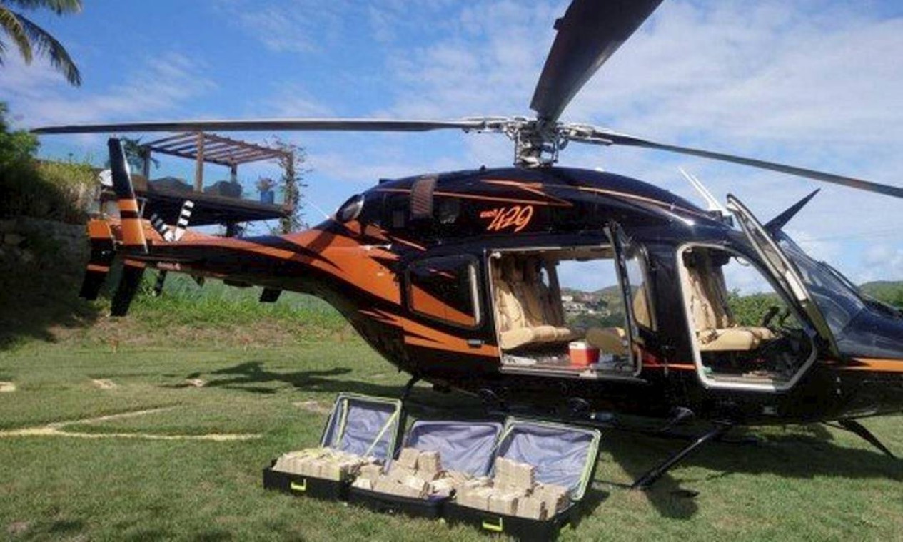 Montante de R$ 7 milhões estava dividido em três malas e partiria de Búzios para São Paulo de helicóptero — Foto: Reprodução