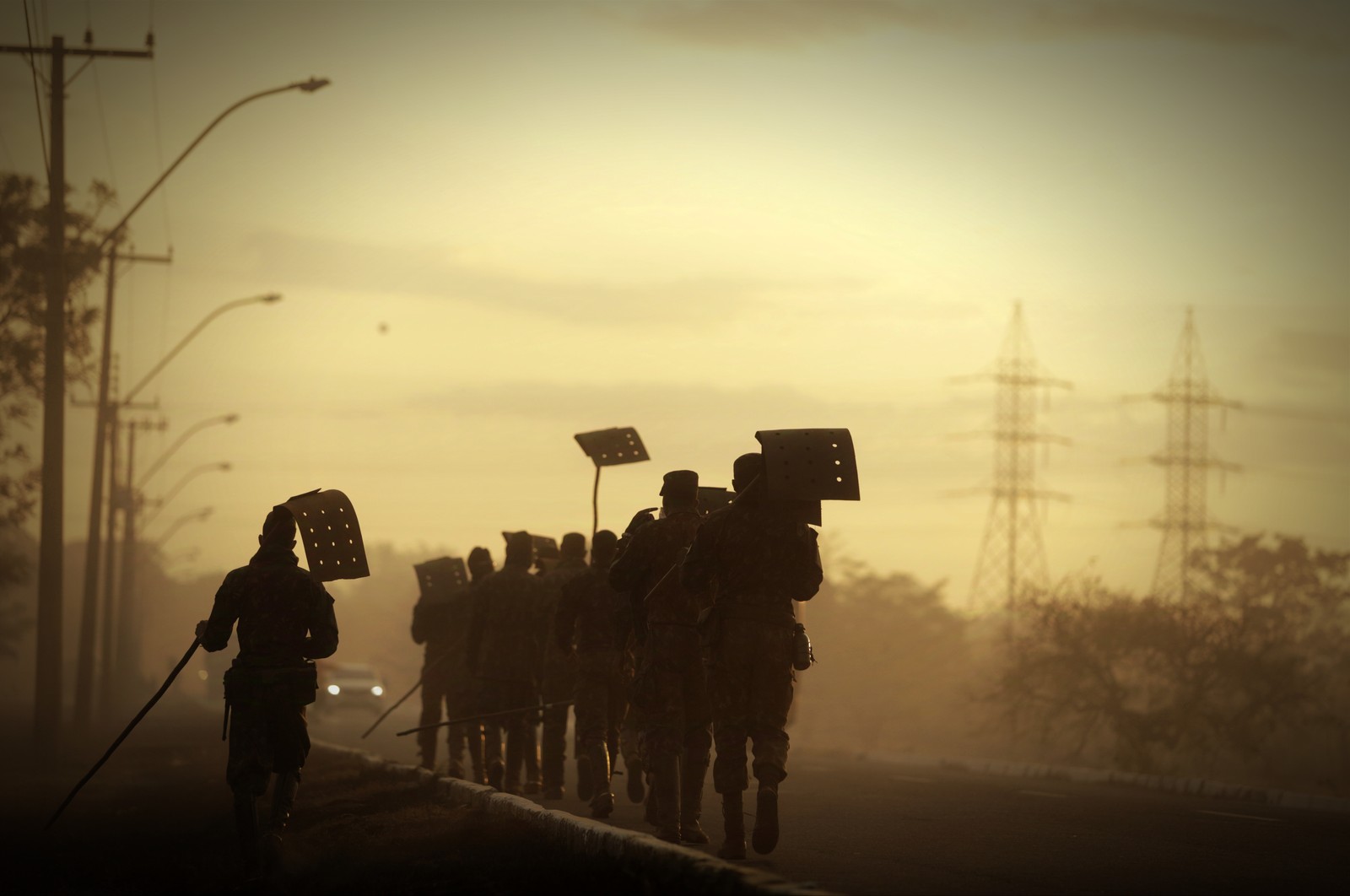Exército e Corpo de Bombeiros trabalham no combate ao fogo no Parque Nacional de Brasília em setembro de 2024 — Foto: Cristiano Mariz / Agência O Globo