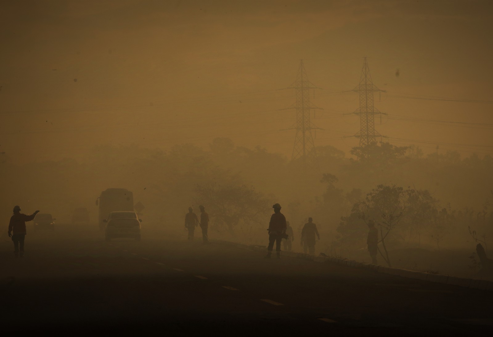 Fumaça de incêndios florestais de grande proporção cobrem o horizonte do Parque Nacional de Brasília em setembro de 2024 — Foto: Cristiano Mariz / Agência O Globo