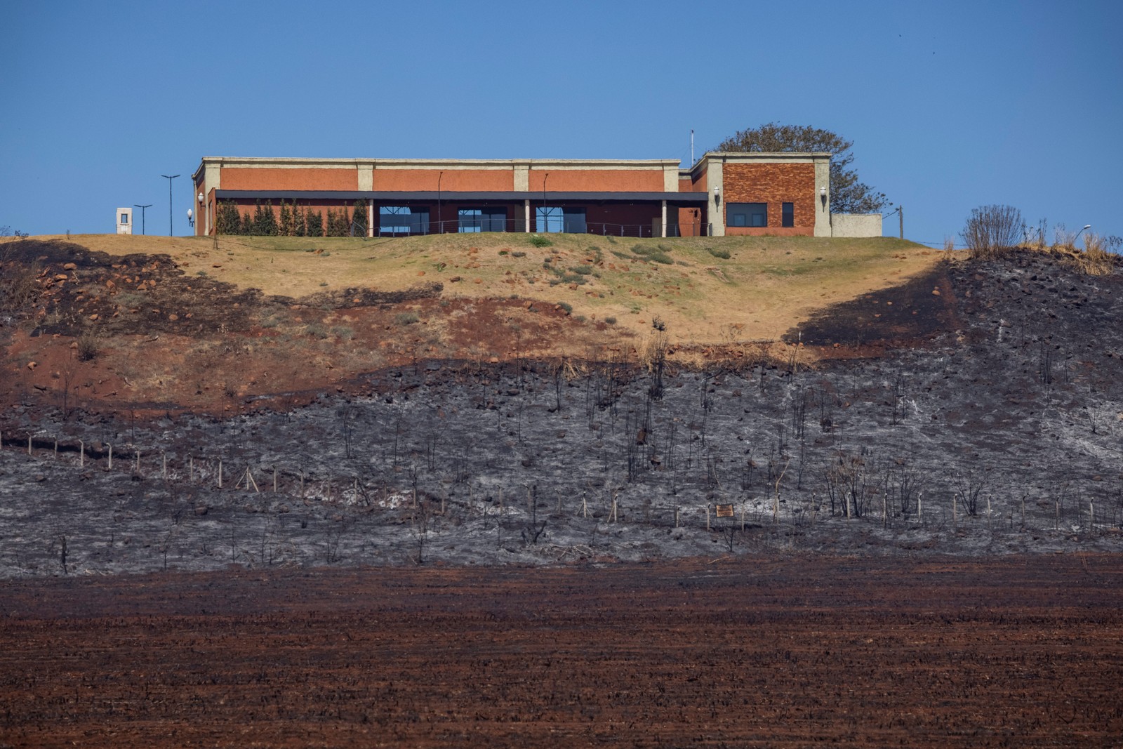 Trecho de terreno agrícola atingido pelo fogo dos incêndios florestais em Ribeirão Preto — Foto: Victor Moriyama / Bloomberg