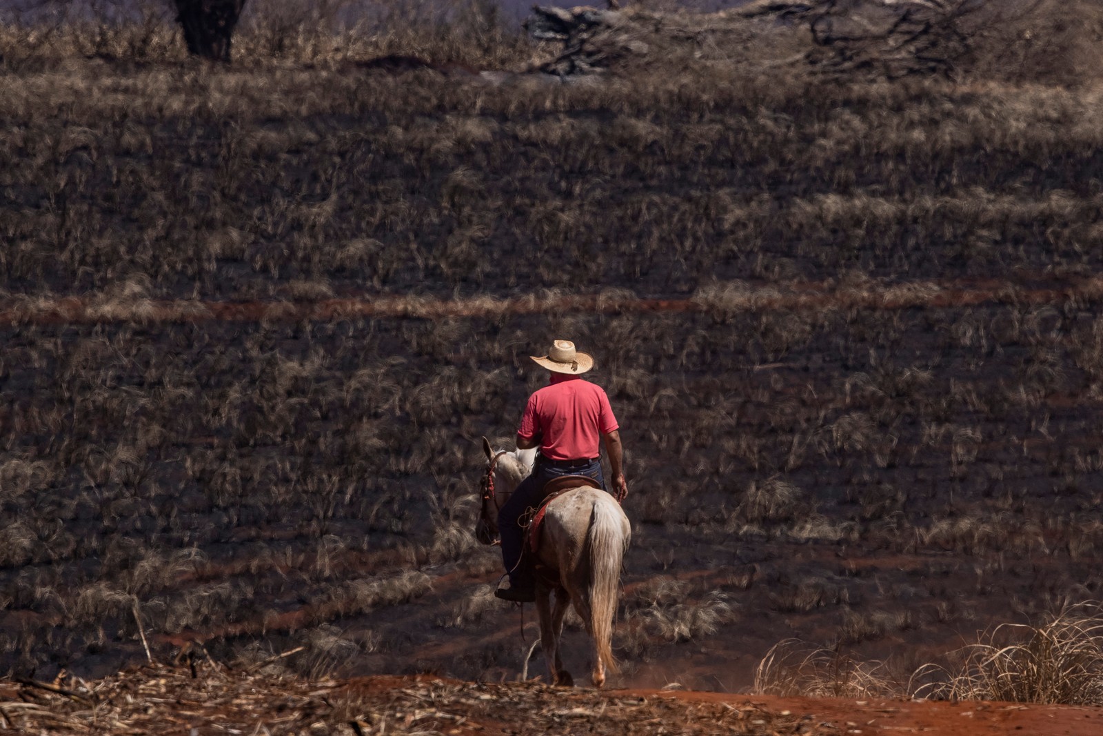 Trabalhador rural observa terreno após incêndios florestais em Ribeirão Preto — Foto: Victor Moriyama / Bloomberg