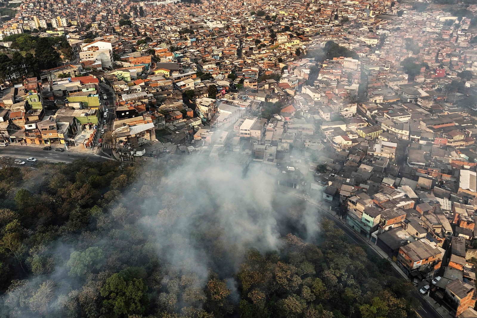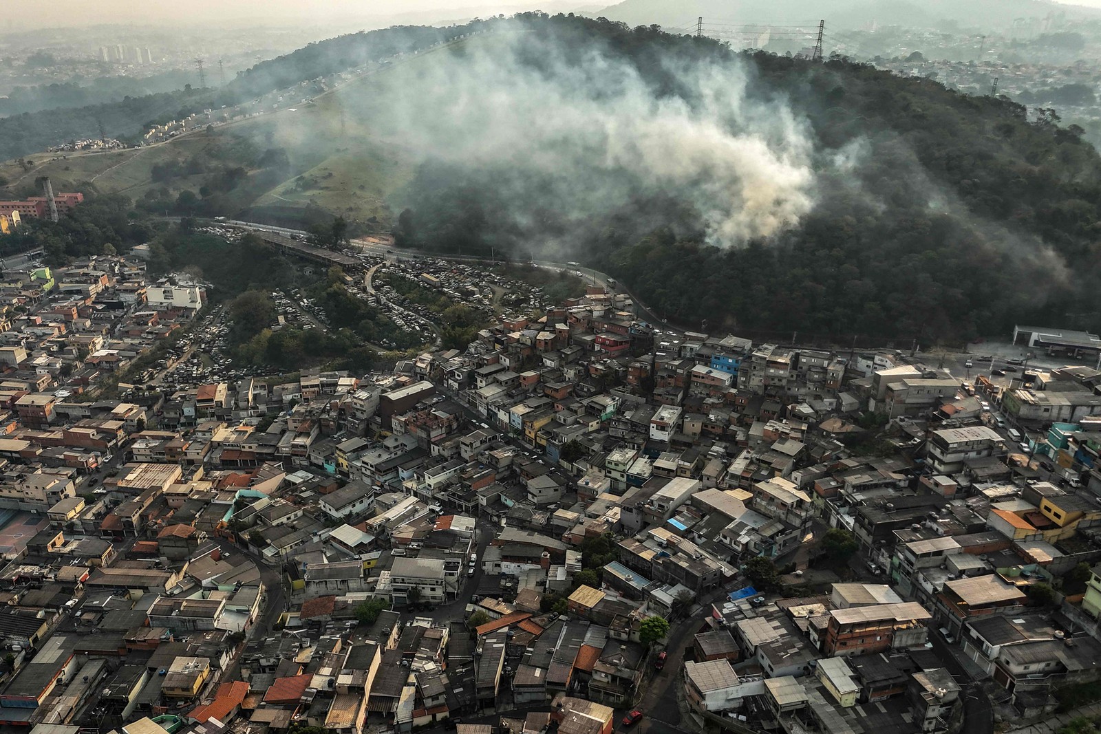 Vista aérea de incêndio florestal próximo ao bairro de Pirituba,em São Paulo,em 13 de setembro de 2024 — Foto: Nelson ALMEIDA / AFP