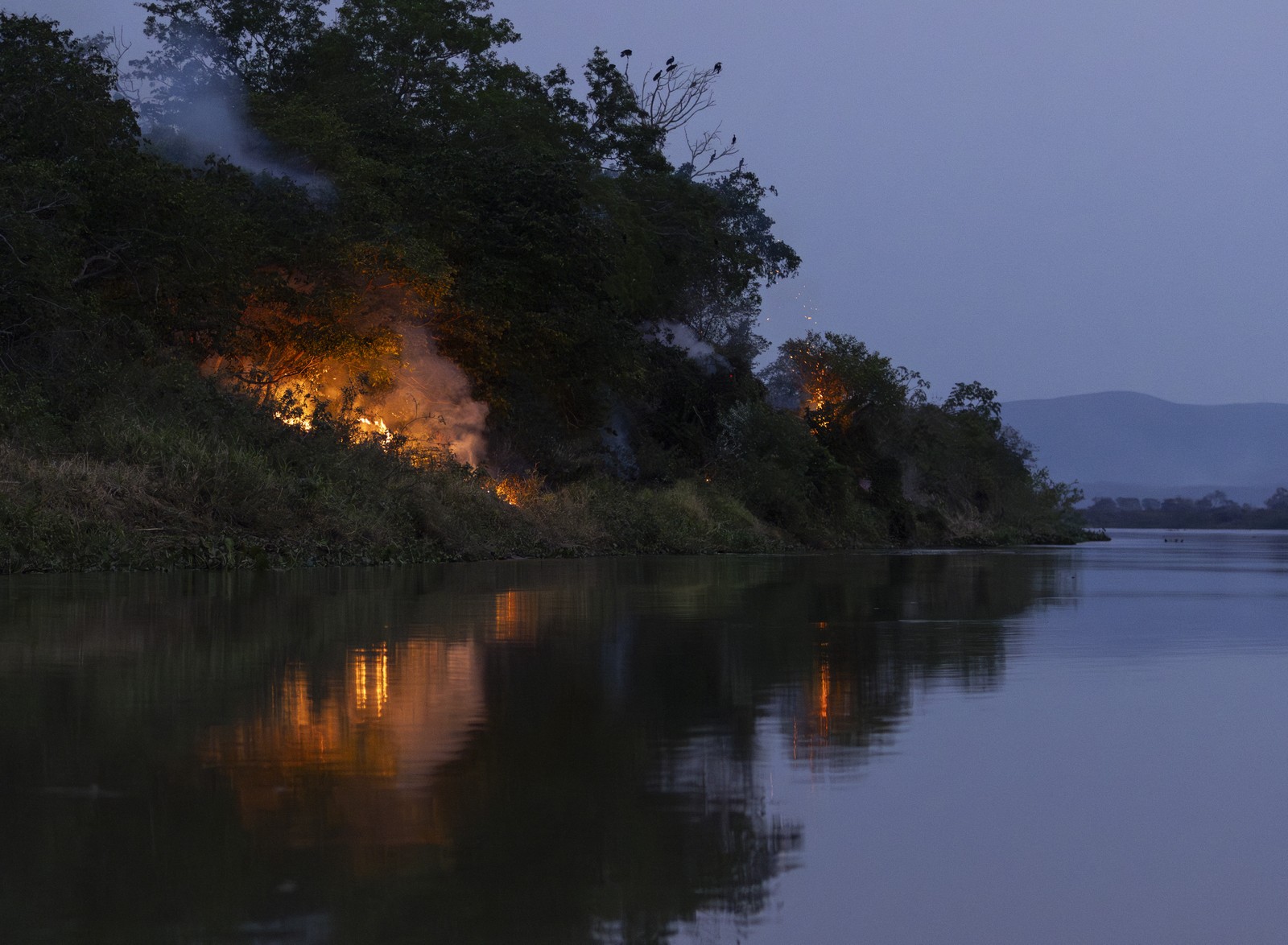 Fogo na vegetação à margem do Rio Paraguai,em Corumbá,no Mato Grosso do Sul — Foto: Márcia Foletto