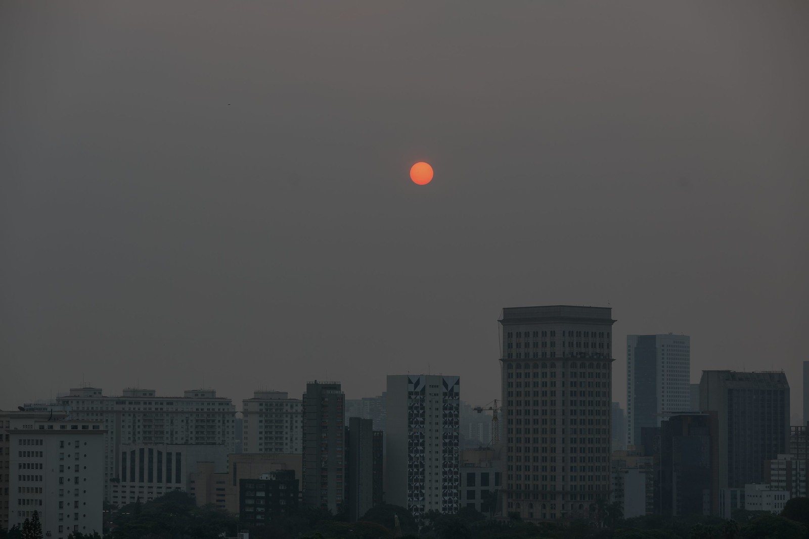 O céu do fim de tarde em São Paulo coberto de fumaça oriunda de queimadas na Amazônia — Foto: Edilson Dantas/Agência O GLOBO
