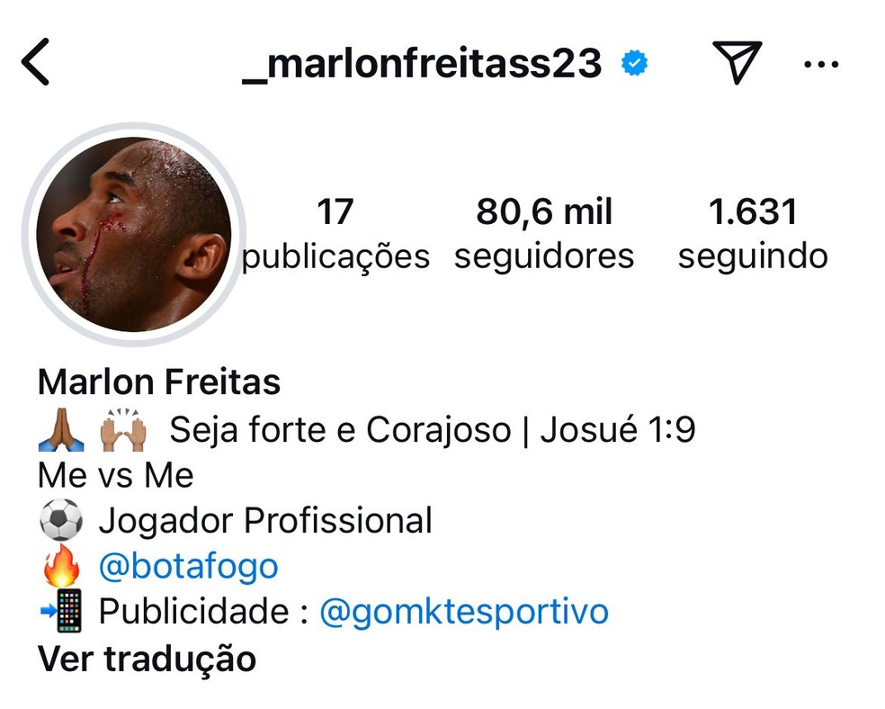 Marlon Freitas usa imagem de Kobe Bryant,ex-jogador de basquete,com sangue escorrendo no rosto como foto de perfil no Instagram — Foto: Reprodução/Redes sociais