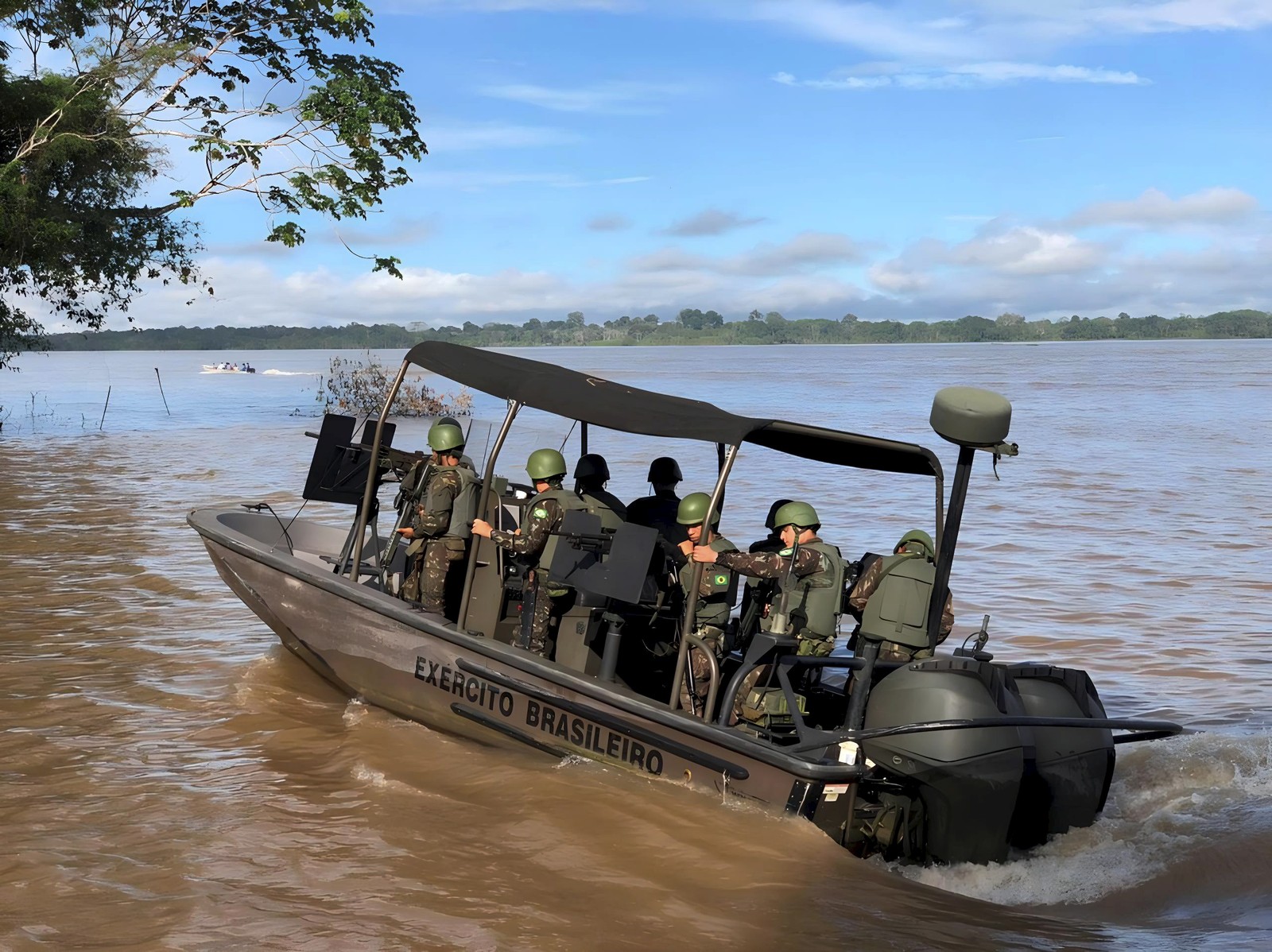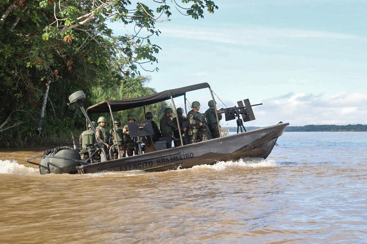 Militares brasileiros realizam buscas com embarcações ao longo da bacia do Rio Amazonas — Foto: Comando Militar da Amazônia / AFP