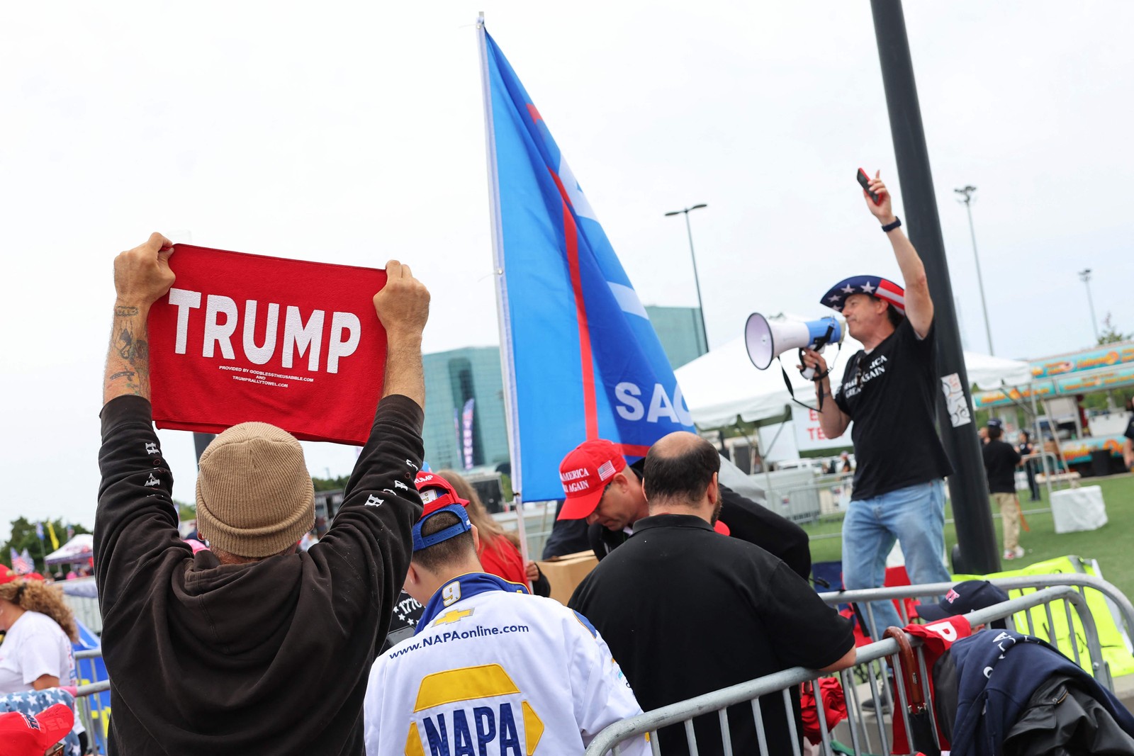 Apoiadores de Trump esperam chegada do ex-presidente em comício no Estado de Nova York — Foto: Michael M. Santiago/Getty Images/AFP