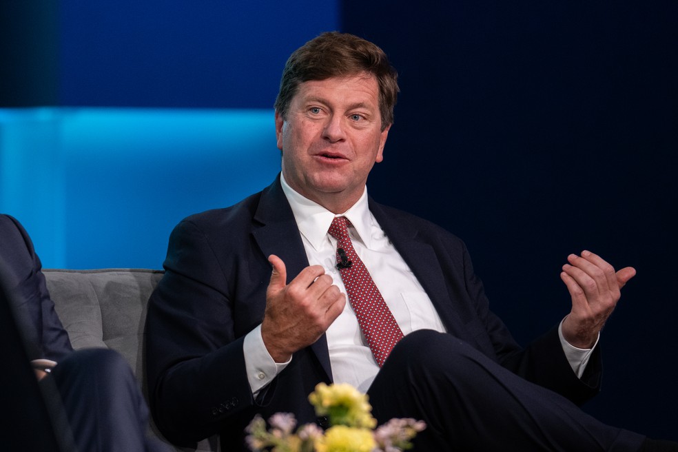 O conselheiro econômico de Trump,Scott Bessent,arrecadou fundos para a campanha e apareceu na TV para promover a agenda de segundo mandato do republicano — Foto: Stefani Reynolds/Bloomberg