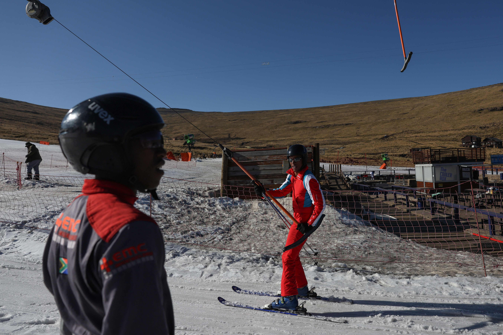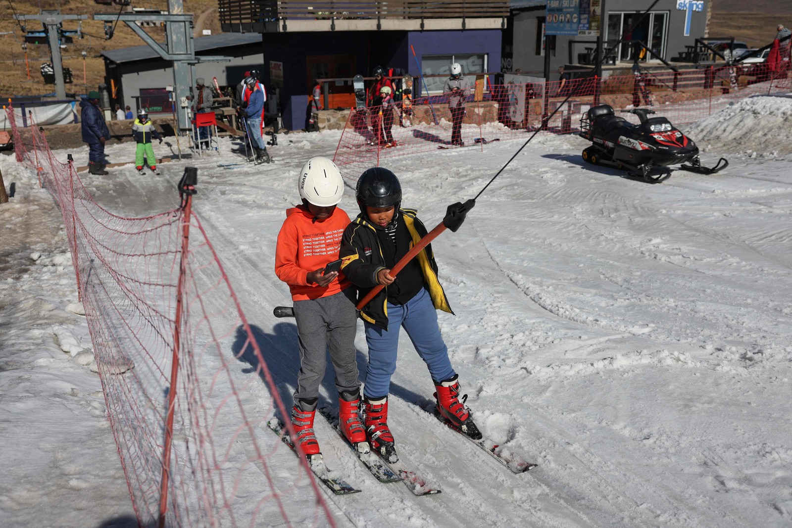 Resort cercado pelas montanhas Maluti,no pequeno reino no sul da África,precisou apelar para a neve artificial neste inverno