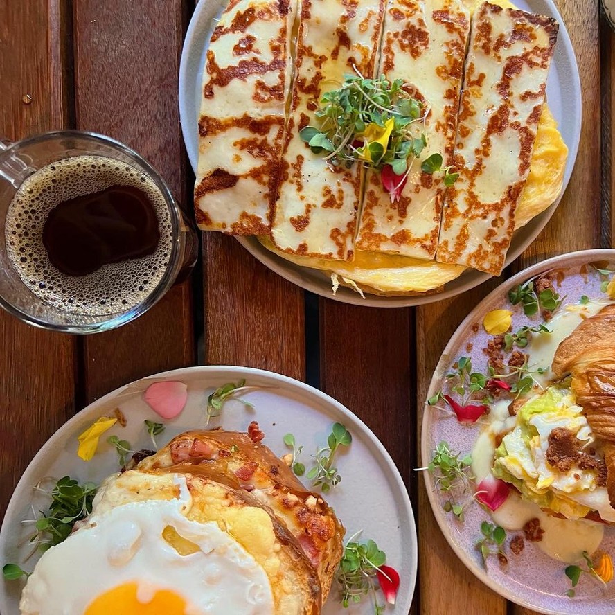 São sanduíches transados e bem cuidados,como o madame toast,um pão de forma de massa de brioche com queijo gruyère,presunto,mostarda,béchamel e um ovo estrelado em cima. Enorme,para apetites dispostos (R$ 42). O house toast também é de fôlego: sourdough embaixo e ovos mexidos cremosos por cima com queijo de coalho maçaricado e lambuzado de mel (R$ 54). O mushroom toast,mesmo sourdough,combina espinafre com cogumelos e queijo meia cura gratinado (R$ 58). Os três são muito bons. E ainda vi o pãozão de queijo recheado com uma combinação de quatro tipos de queijo,servido com a geleia da casa (R$ 52).