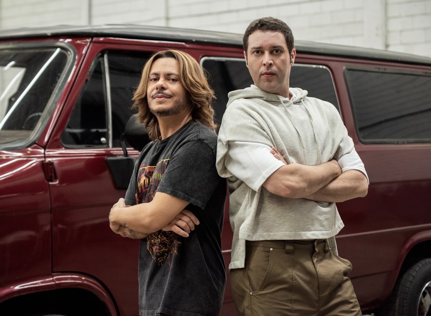 Marcus Majella e Pedroca Monteiro nos bastidores de \'Agentes especiais\' — Foto: Camilla Maia Atores do “Vai que cola”,do Multishow,Marcus Majella e Pedroca Monteiro posam caracterizados como os