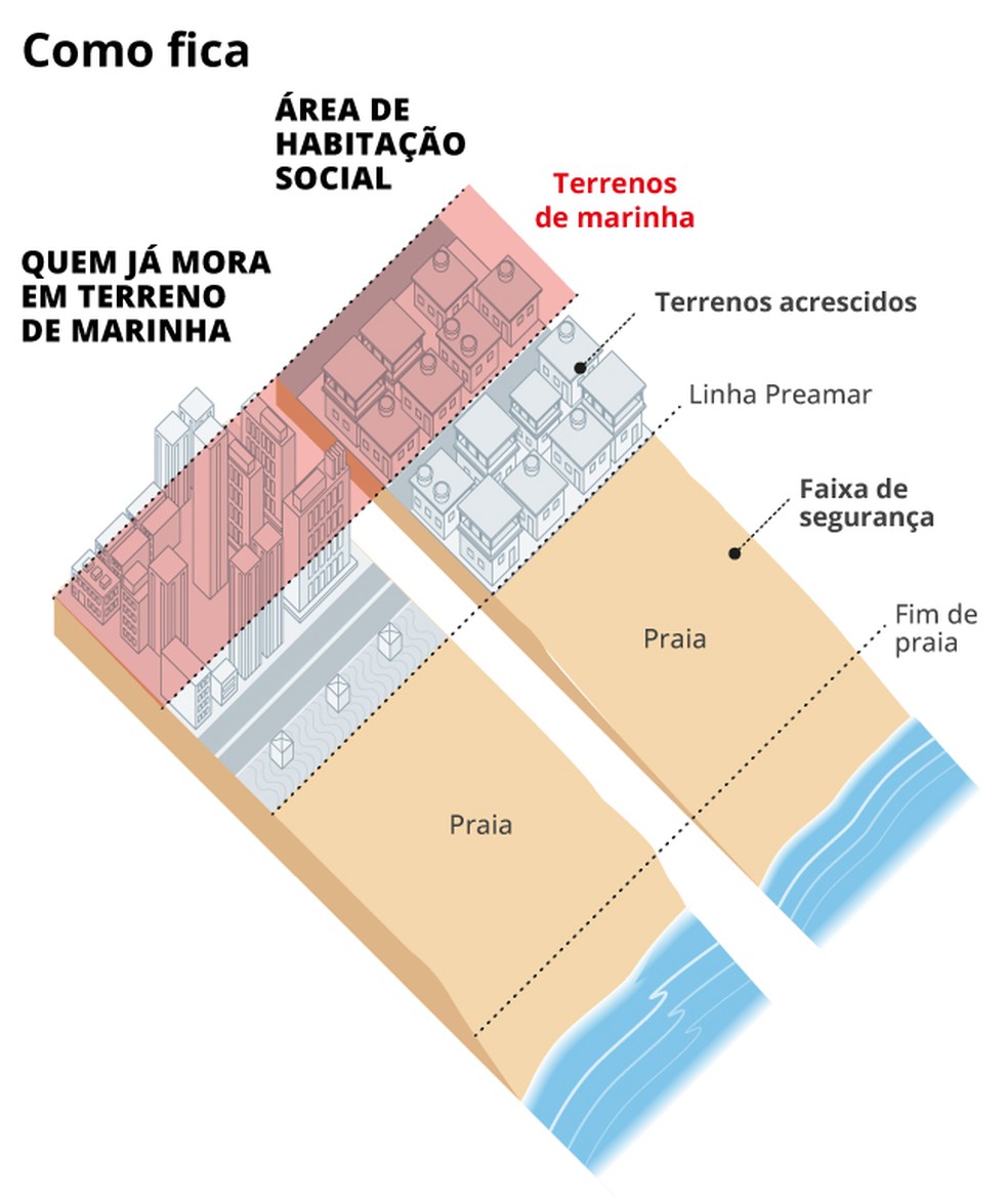 O que acontece com quem já tem imóvel/propriedade em Terrenos de Marinha? Hoje 17% desse imóvel pertence à União. Com a PEC,o proprietário (seja particular,ou estados e municípios) fica autorizado a comprar a porcentagem restante e assim ter o domínio pleno do imóvel,deixando de pagar taxas de foro e laudêmio. O texto da PEC não deixa claro se o proprietário será obrigado a comprar,mas diz que haverá um prazo de dois anos para adoção de providências pelo poder público.O que acontece com moradores de favelas ou de áreas de baixa renda que ocupam esses terrenos? A PEC diz que haverá a transferência gratuita dos terrenos no caso das áreas de habitação de interesse social. Mas não dá detalhes sobre como será o processo. E os terrenos da Marinha hoje totalmente desocupados? Continuam com a União. A PEC estabelece um marco temporal e diz que o domínio pleno só será possível a quem ocupa os terrenos da Marinha na data da promulgação da PEC. A União mantém domínio em áreas não ocupadas e onde há serviço público ou unidades de conservação ambiental. O texto não menciona qualquer regra sobre acesso a praias,mas críticos alertam que,sem a proteção da União,aumenta o risco de privatização de acessos,a partir de leis municipais mais brandas.
