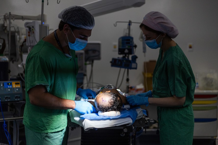 Cirurgia de hidrocefalia é realizada na Santa Casa de São Paulo — Foto: Maria Isabel Oliveira/O Globo