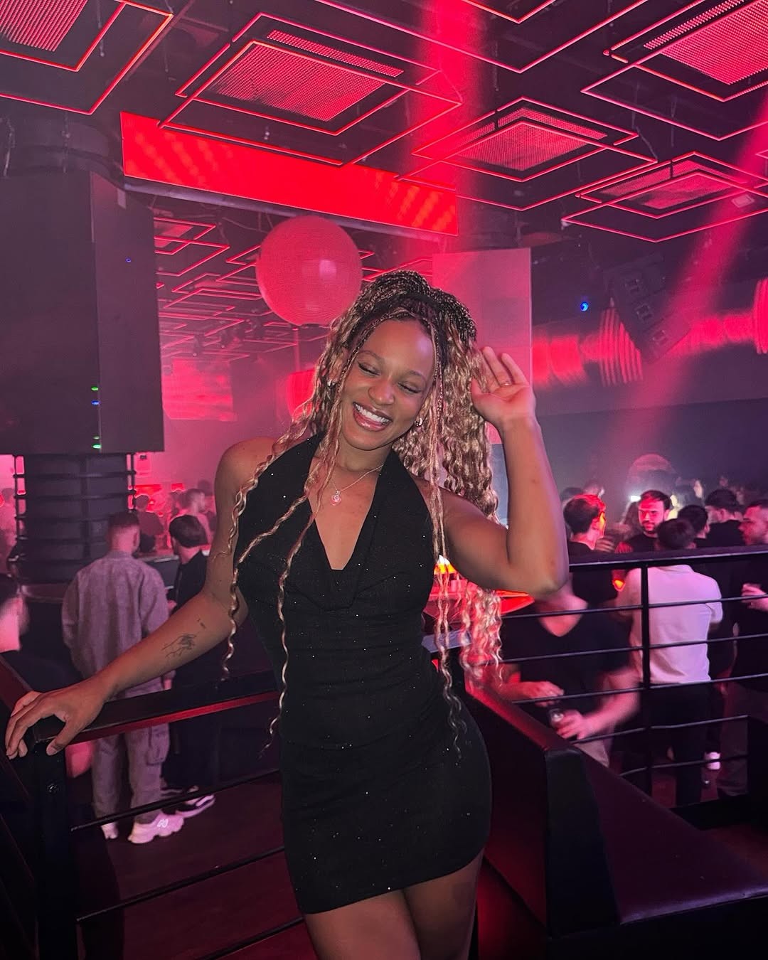 Rebecca Andrade aposta em um 'pretinho básico' curto com detalhes em bege e um decote cavado — Foto: Reprodução/Instagram
