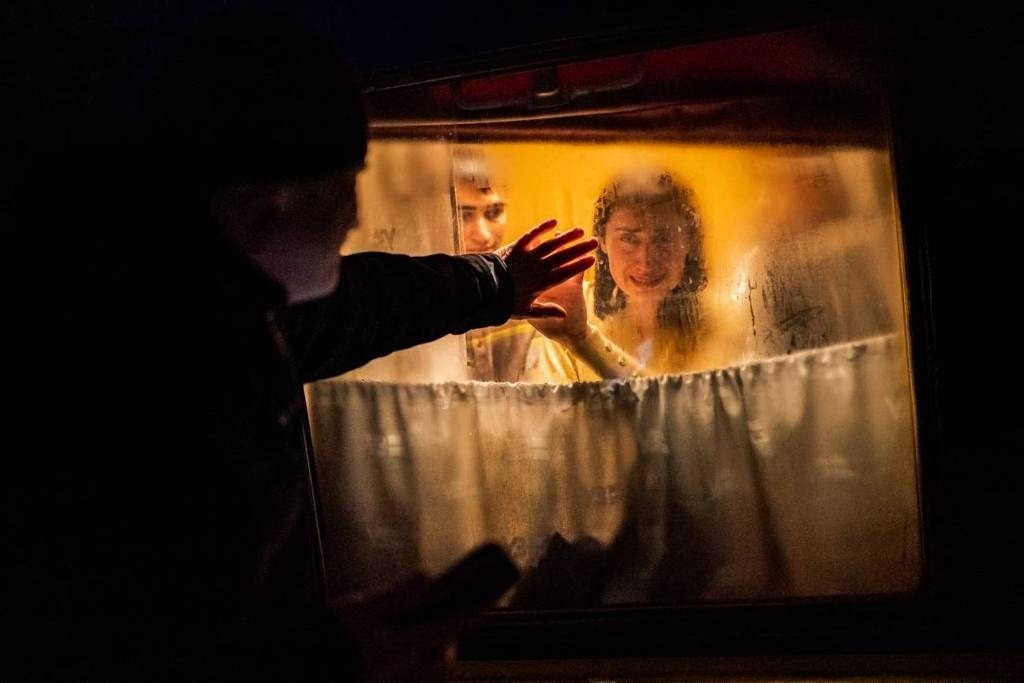 Eleita a foto do ano por concurso internacional,imagem mostra uma mulher dentro de um trem; ela chora e toca o vidro ao despedir-se do marido,convocado para lutar na guerra na Ucrânia — Foto: Salwan Georges/Siena International Photo Awards