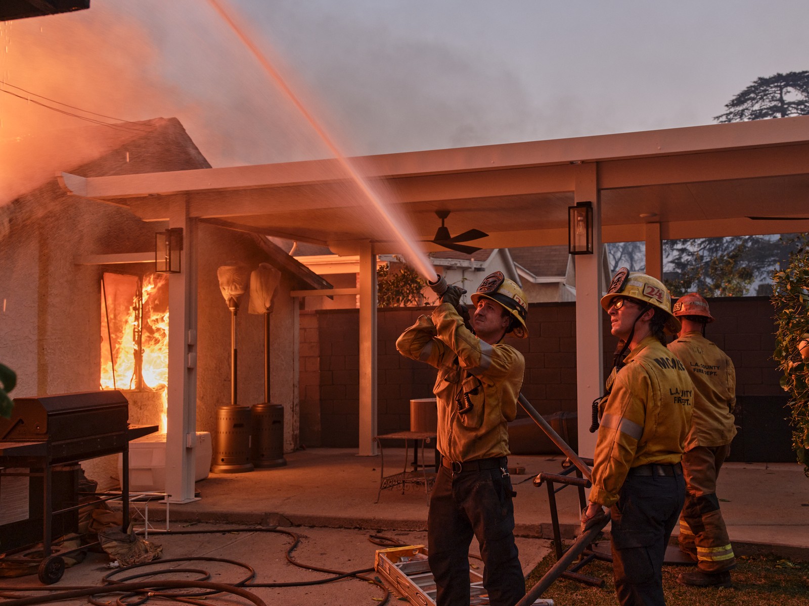 Bombeiros particulares são procurados durante incêndios em Los Angeles — Foto: Ariana Dehsler/The New York Times