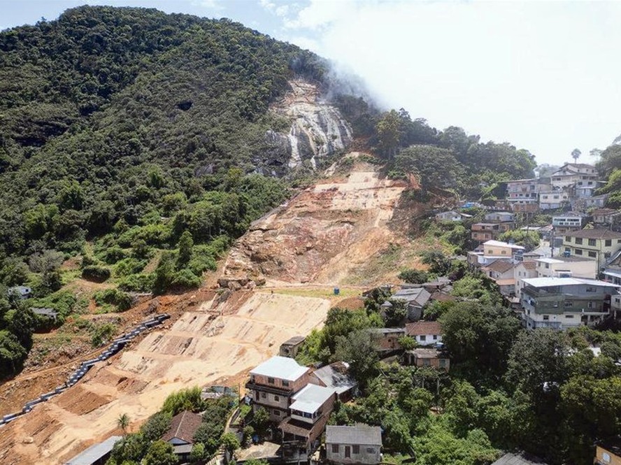 Morro da Oficina,um dos locais mais afetados em 2022: segundo mapeamento geológico do DRM,risco de deslizamentos segue alto em dez bairros e 6.311 moradias de Petrópolis — Foto: Agência O Globo / Márcia Foletto