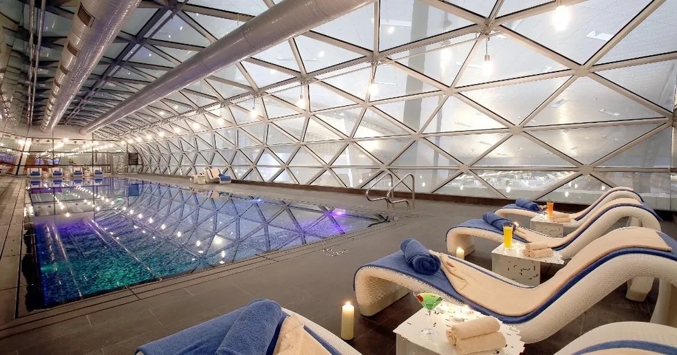 Aeroporto em Doha tem um dos hotéis mais luxuosos do mundo com comodidades como piscina e simulador de golfe — Foto: Reprodução/Instagram