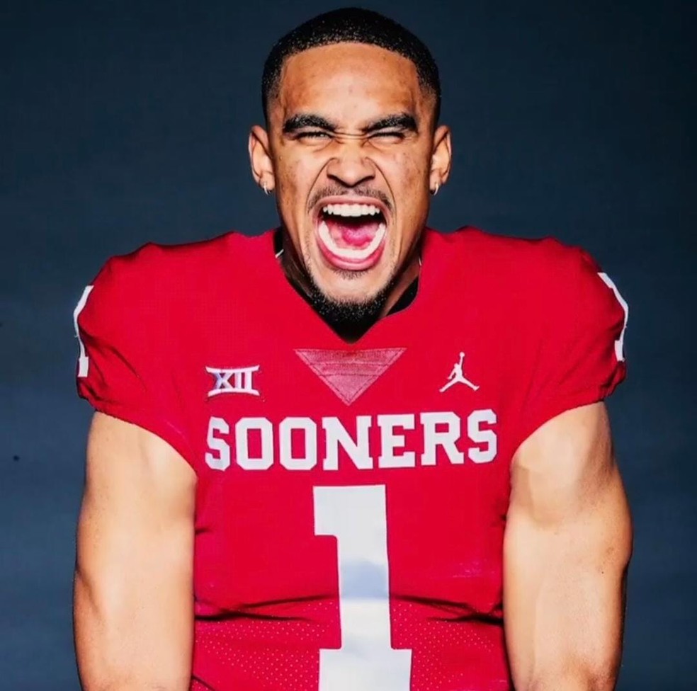 Jalen Hurts com o uniforme da Universidade de Oklahoma — Foto: Reprodução