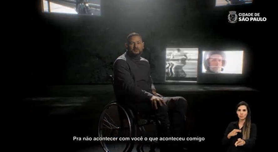 Imagem de campanha da prefeitura de São Paulo contra o mototáxi usa cadeirante para falar dos riscos — Foto: Prefeitura de São Paulo