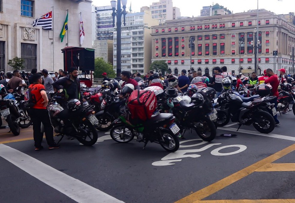 Motociclistas protestam em São Paulo contra proibição do serviço de mototáxi — Foto: Gabriel Silva/Ato Press