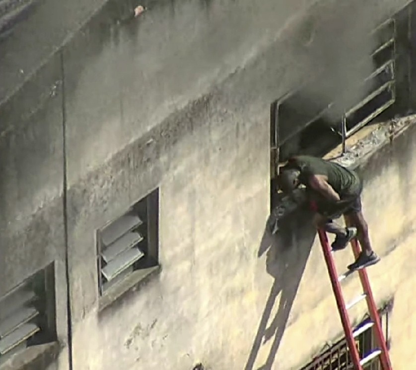 Vítimas de incêndio pedem socorro da janela da confecção de roupas em Ramos — Foto: Reprodução