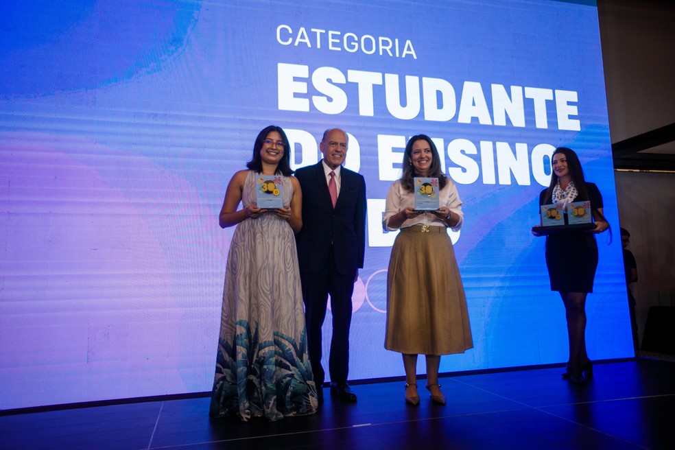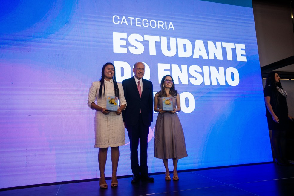 Na Foto,à esquerda,Letícia dos Santos,2º lugar da categoria Estudante do Ensino Médio,Paulo Tonet Camargo — Foto: Brenno Carvalho