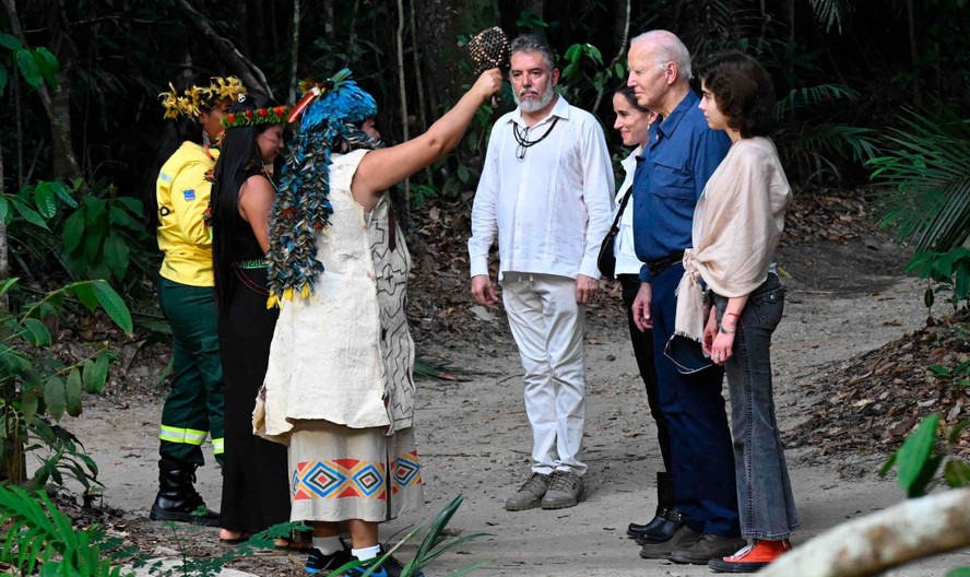 O presidente dos EUA,Joe Biden,visita o Museu da Amazônia com sua filha,Ashley Biden — Foto: SAUL LOEB/AFP
