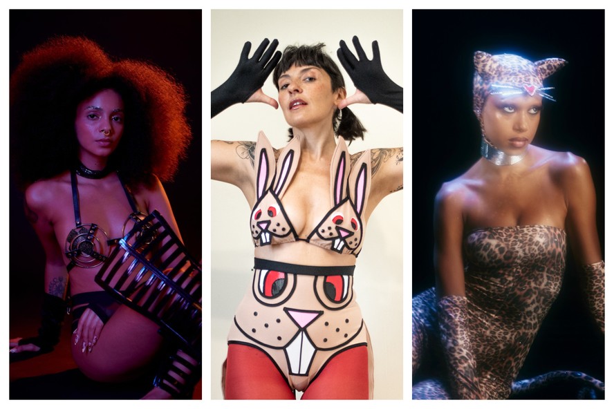 Assim continuou até aportar nos trópicos,onde o calor escaldante deixou tudo mais sensual. Para a folia deste ano,as marcas de roupas e adereços estão especialmente safadinhas. As trombetas soando a tendência foram tocadas por gente como a cantora Anitta,que tem mergulhado em acessórios fetichistas,como os harnesses,com tiras em couro que transpassam o tronco e as partes baixas. “Ela passou a bunda do lugar de objeto de desejo para o de sujeito”,diz Clarissa Romancini,da marca Ohlograma,cheia de itens apimentados no estoque. “E cada um faz o que quiser com o próprio corpo.”
