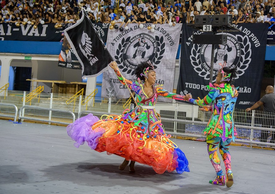 Mestre-sala e Porta-bandeiras da Vai-Vai,maior campeã do carnaval de São Paulo — Foto: Felipe Araujo/Liga-SP