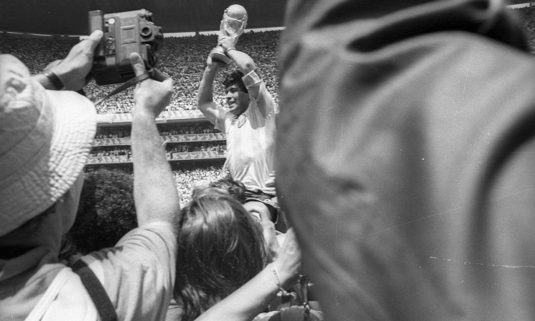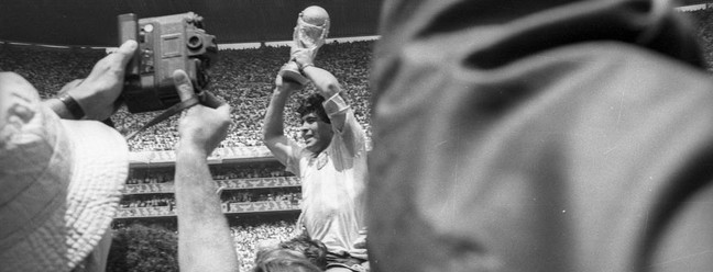Diego Maradona ergue a taça da Copa do Mundo do México,em 1986,depois vencer a Alemanha Ocidental por 3 a 2 — Foto: Luiz Pinto/Agência O Globo