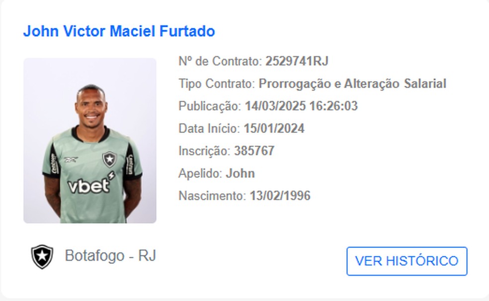 John tem novo contrato publicado no BID da CBF — Foto: Reprodução