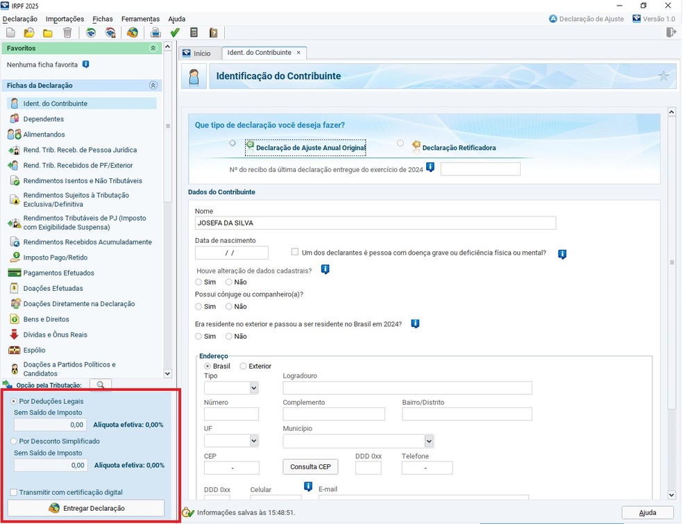 Caso o declarante tenha dúvidas sobre a escolha,o próprio programa,na parte inferior esquerda,qual das duas é mais vantajosa,seja em maior dedução ou que ofereça maior restituição.