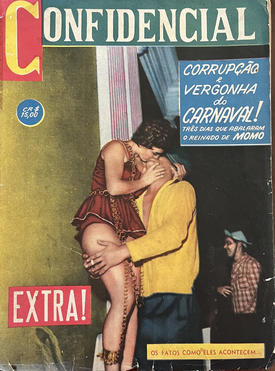 “Corrupção e vergonha do carnaval! Três dias que abalaram o reinado de Momo!”,chocava-se a capa da “Confidencial” de 1959,que carregava como ilustração a foto,na boate Fred’s,em Copacabana,de uma senhora de maiô-saiote beijando um cidadão de camisa de manga comprida e calça idem. A “corrupção” do título era a moral,da perda dos valores cristãos,dos cínicos e,sempre entre aspas,a da falta de pundonor.