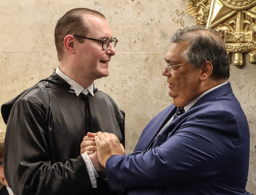 Os ministros Cristiano Zanin e Flávio Dino no STF — Foto: Valter Campanato/Agência Brasil/03-02-2023