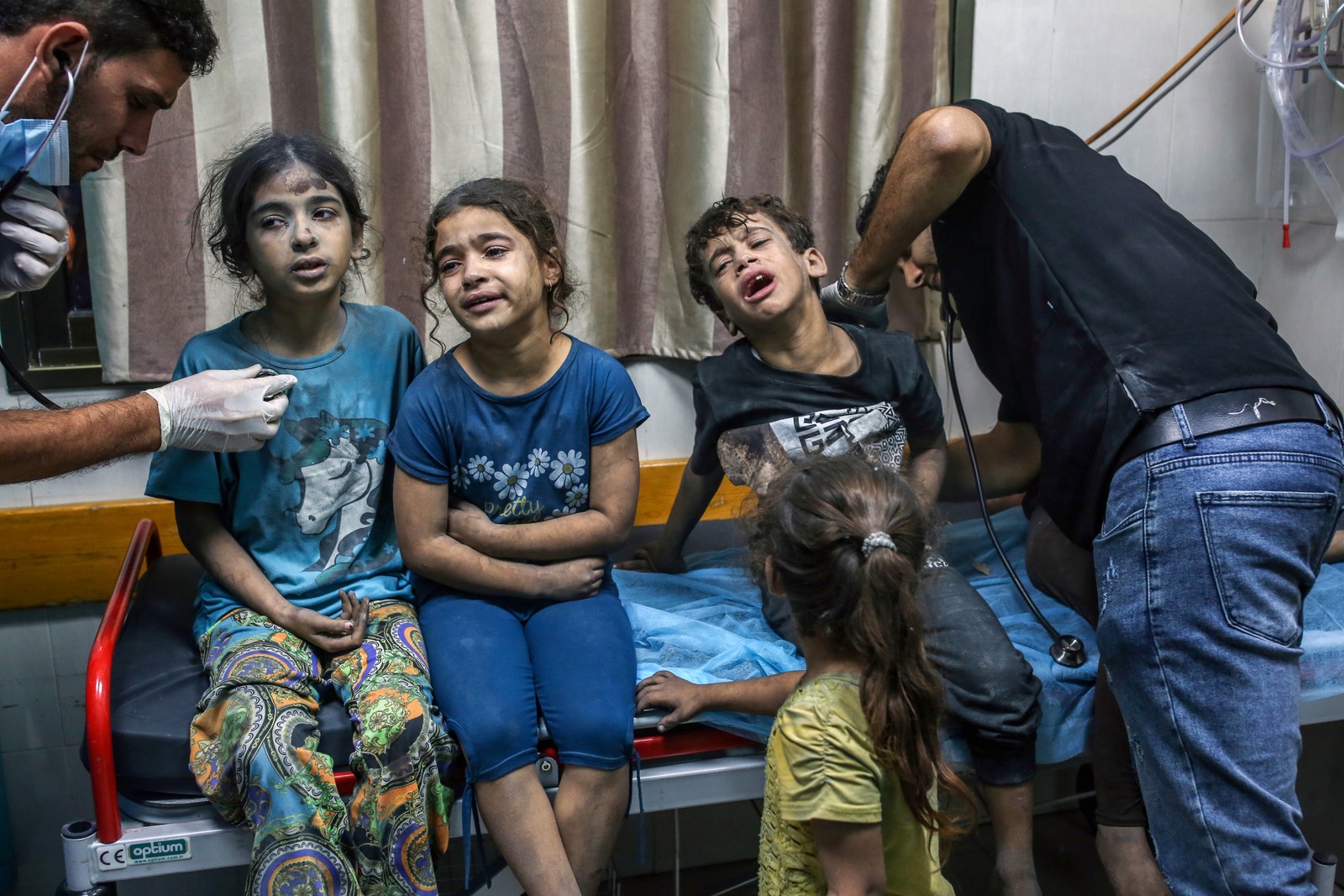 Crianças feridas no Hospital Al-Shifa,na cidade de Gaza,após ataques aéreos israelenses. — Foto: Samar Abu Elouf/The New York Times