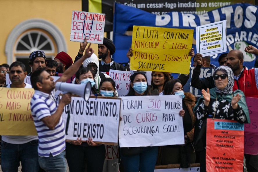Imigrantes protestam em Lisboa contra política de imigração do governo da AD em Portugal — Foto: Patrícia de Melo Moreira/AFP