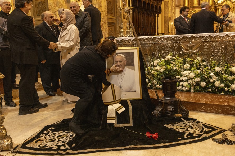 Foto do Papa Francisco em missa na Catedral de Buenos Aires — Foto: Sarah Pabst/The New York Times À medida que os argentinos se despedem do Papa Francisco,o luto dos fiéis foi aprofundado por uma