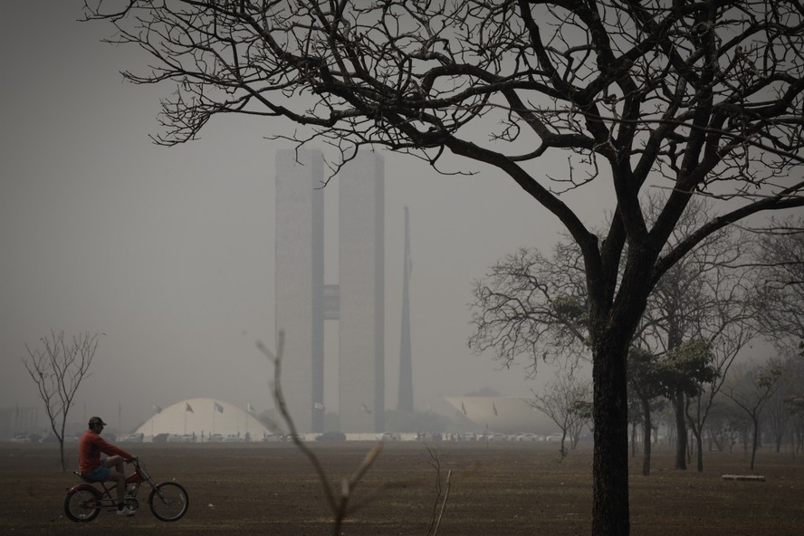 A fumaça das queimadas toma Brasília — Foto: Cristiano Mariz/Agência O Globo/25/08/2024